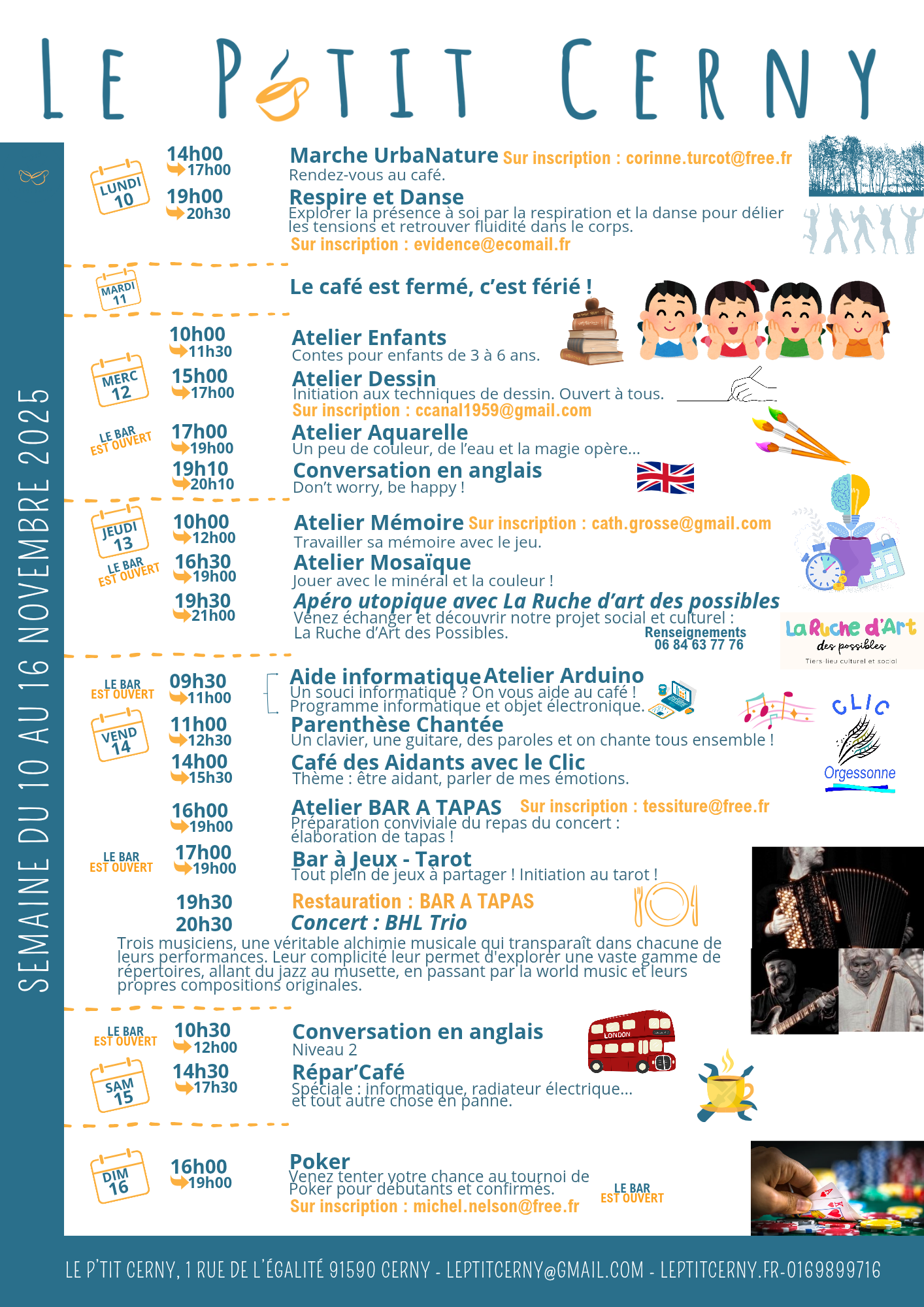 Le P’Tit Cerny c’est un café associatif Mené par de nombreux bénévoles !