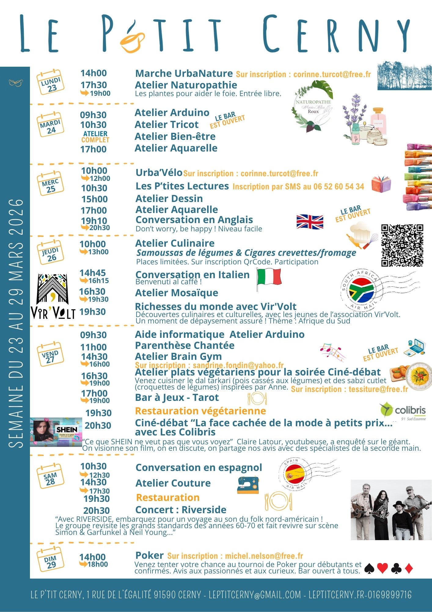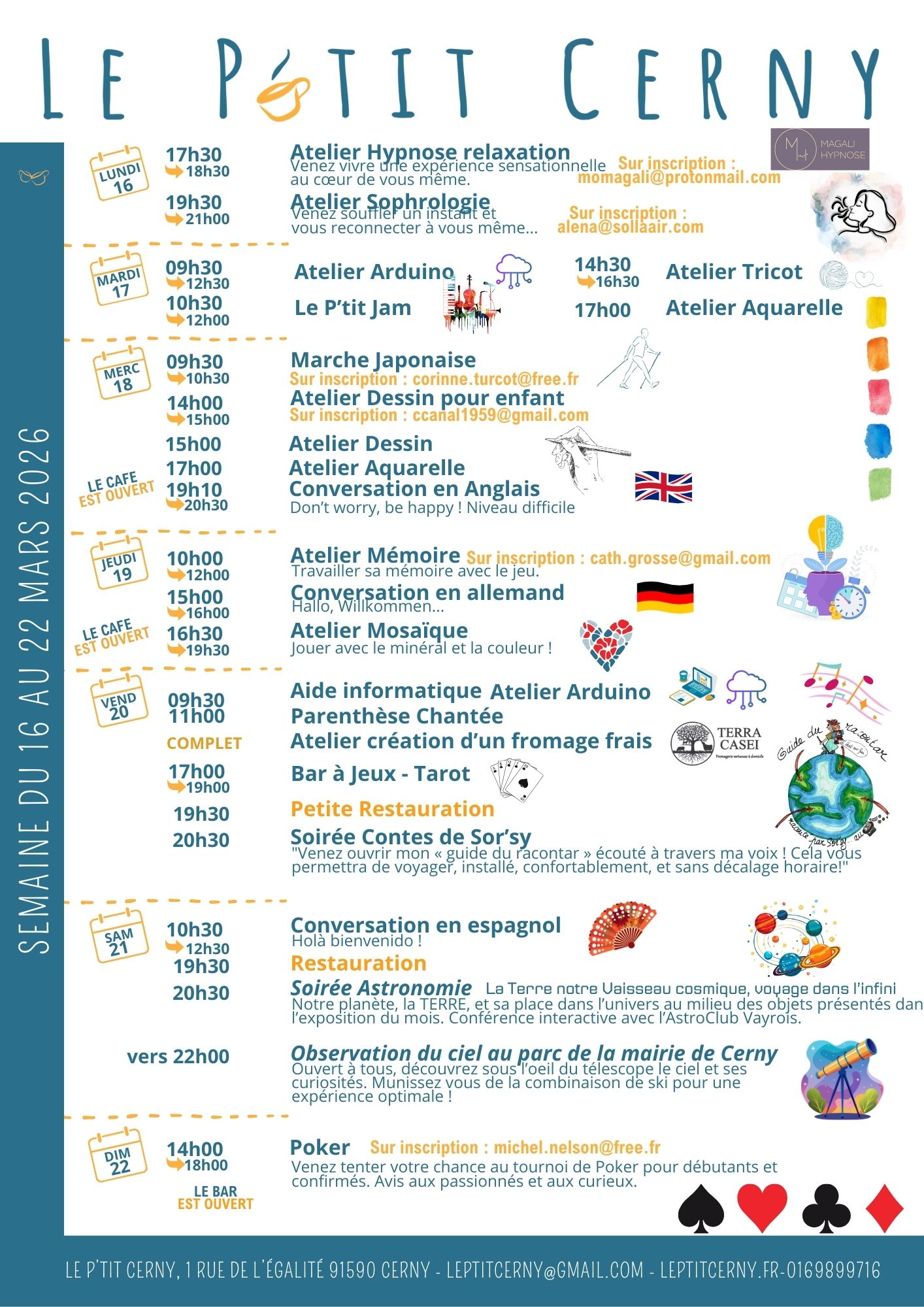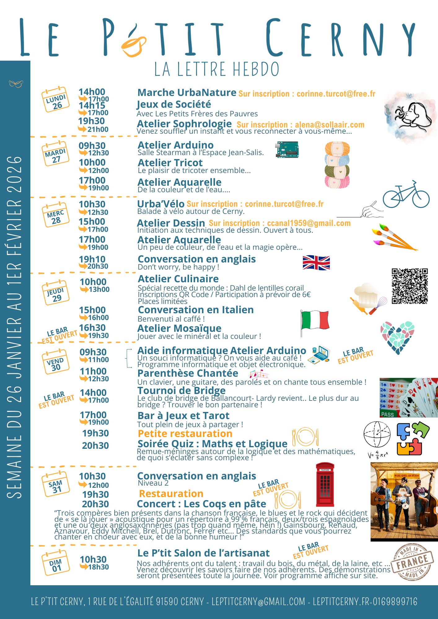 Certains ateliers sont à horaires et jours variables, parfois annulés…