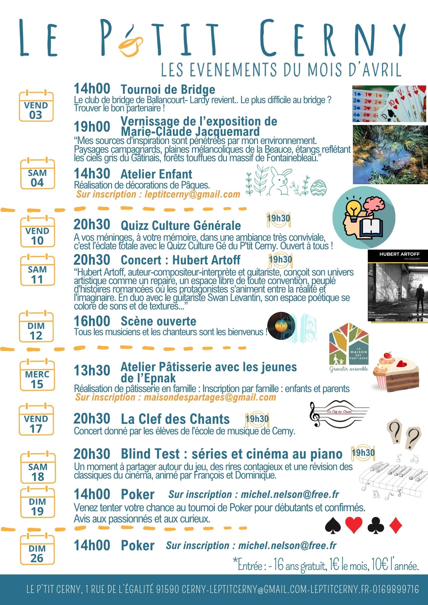 Pour toute demande d’évènement, merci de nous envoyer un mail à coordination.leptitcerny@gmail.com