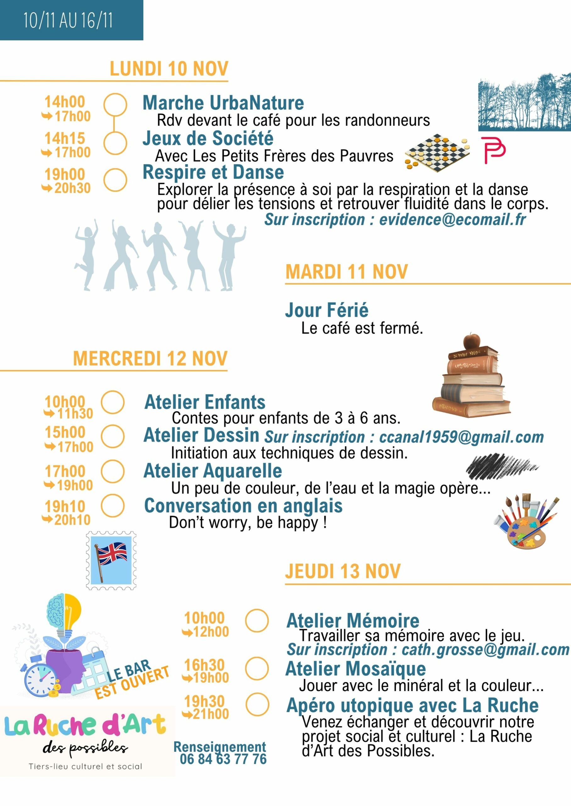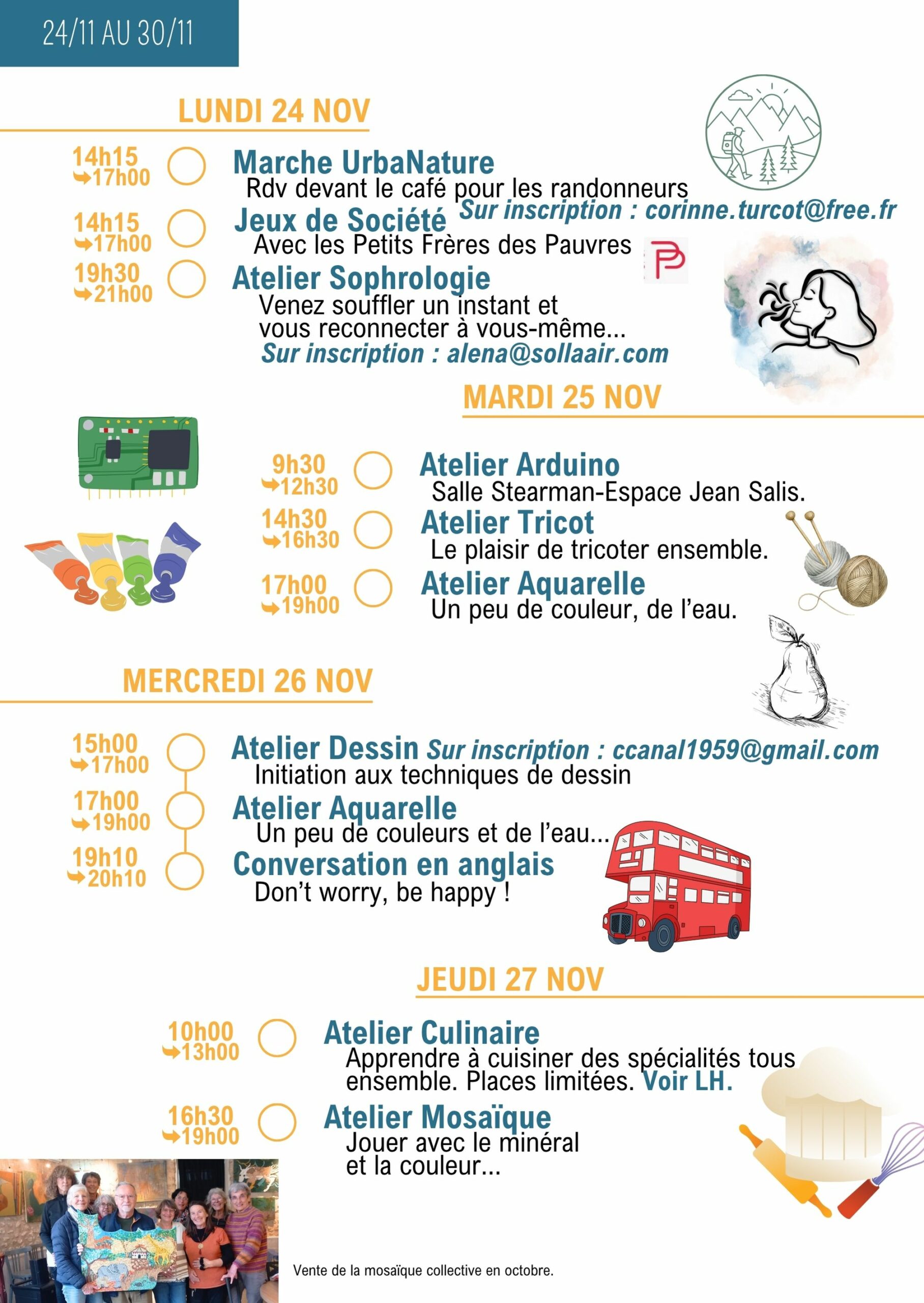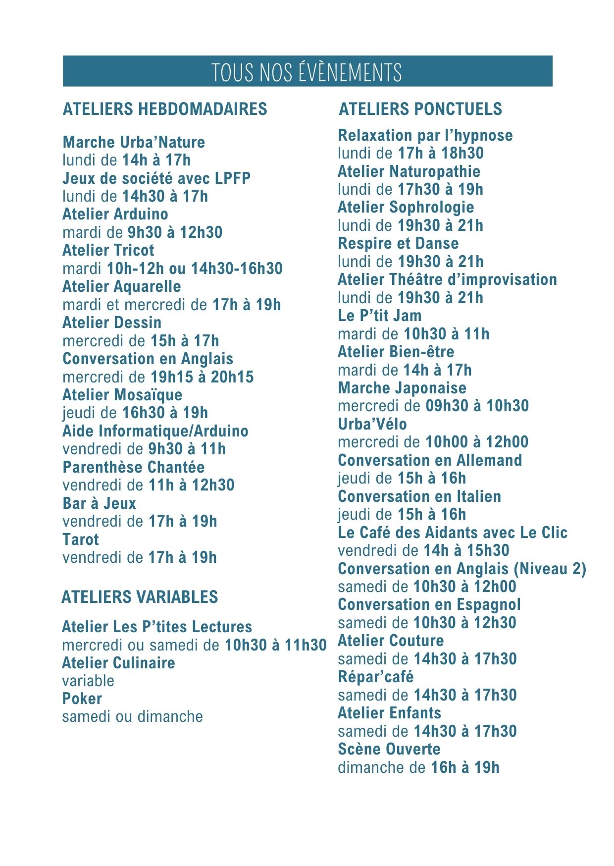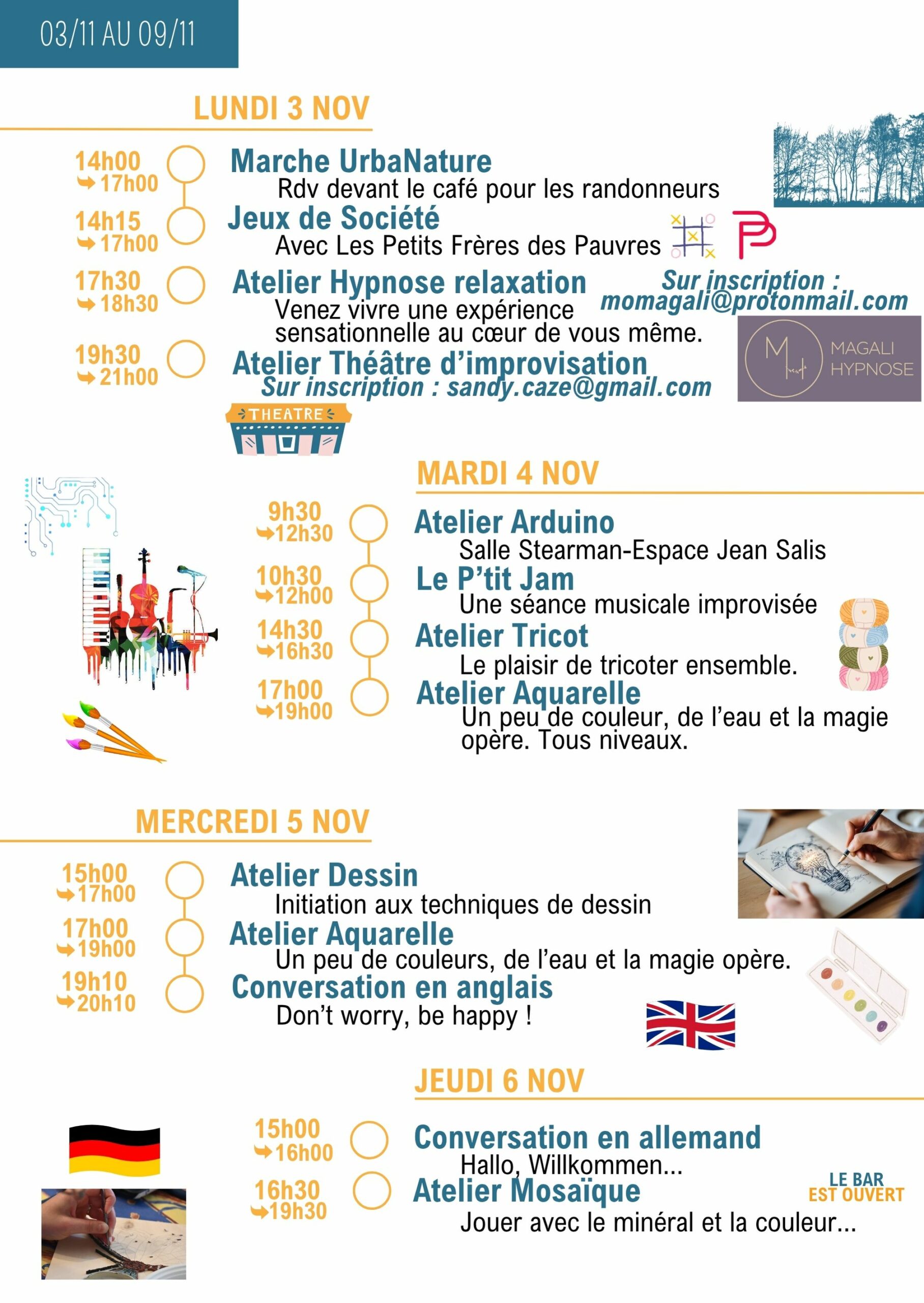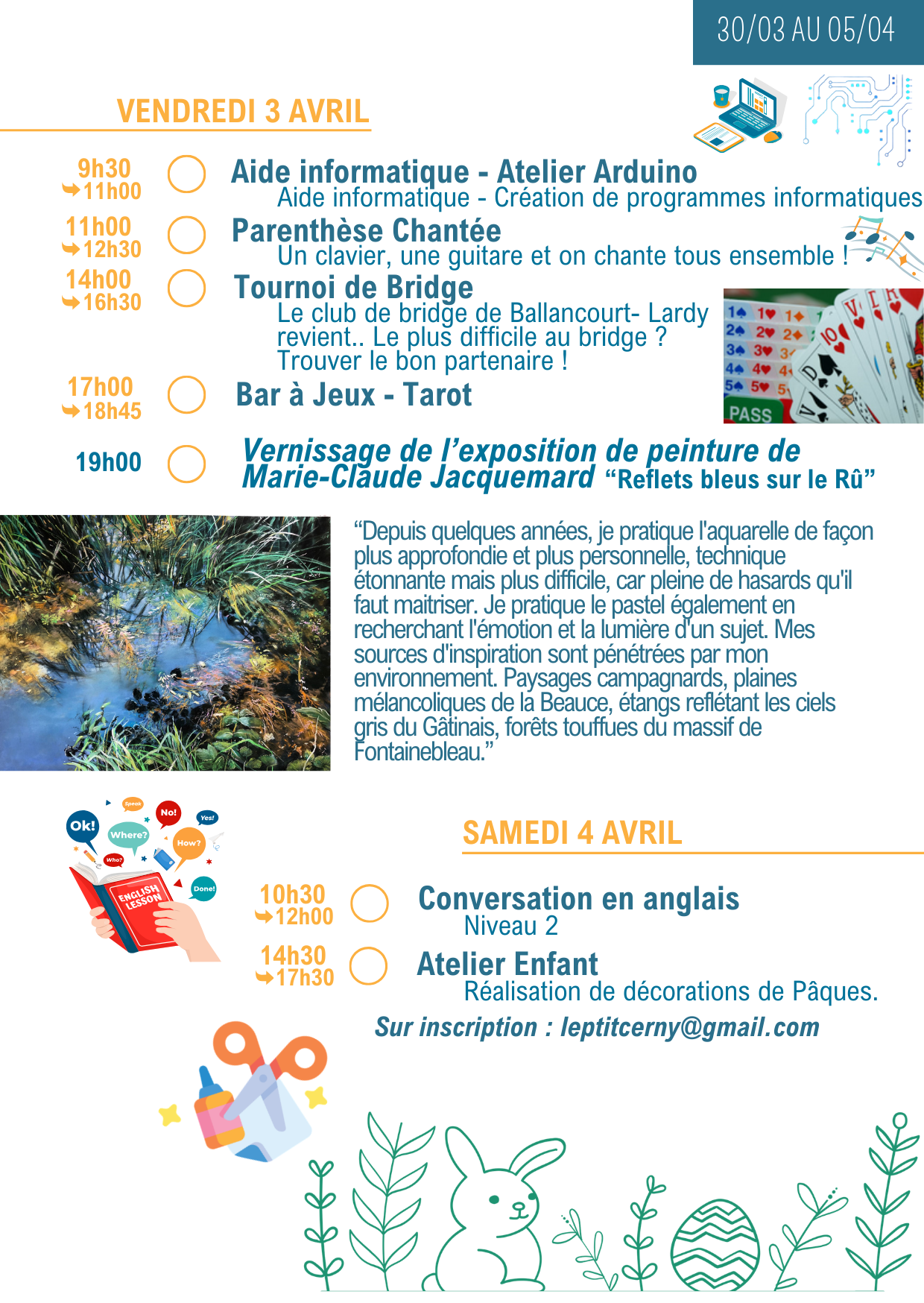 Merci de vérifier les informations dans la lettre hebdo, les jours et les horaires peuvent changer…