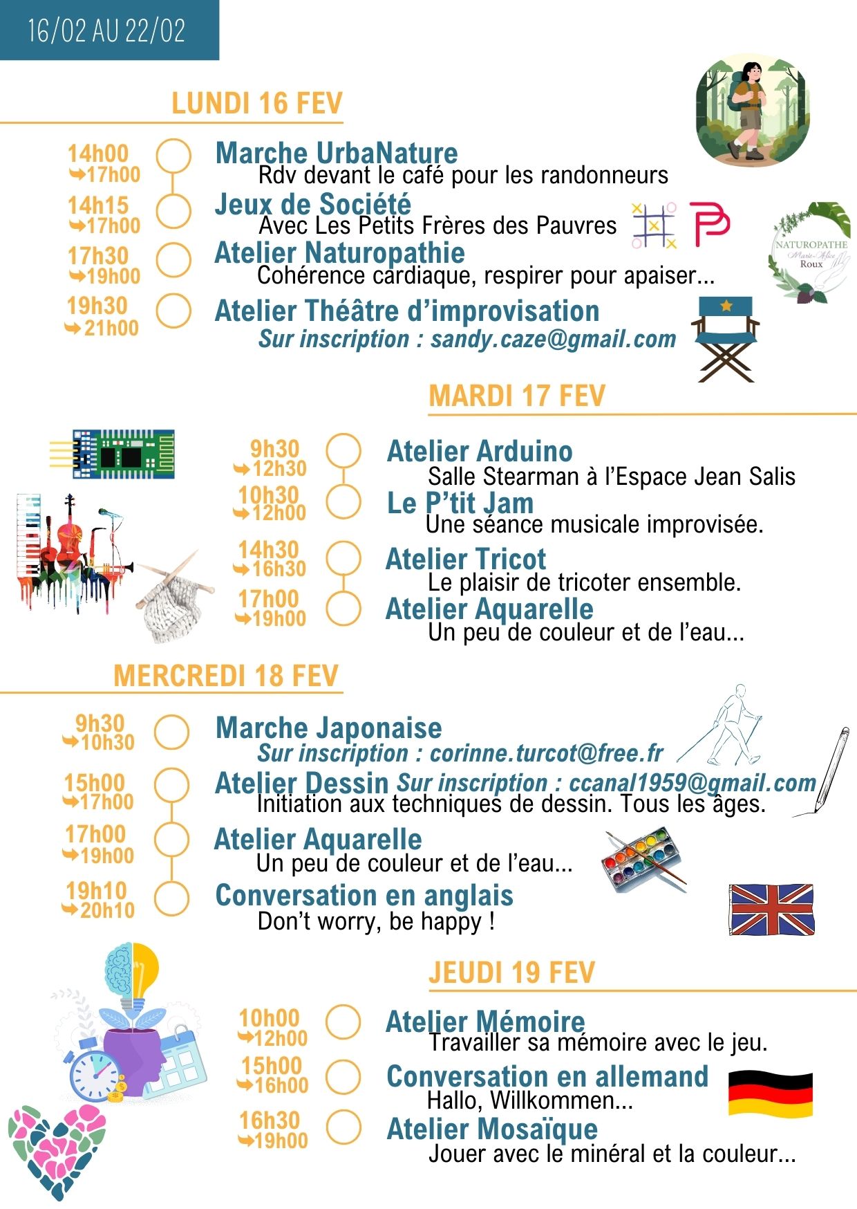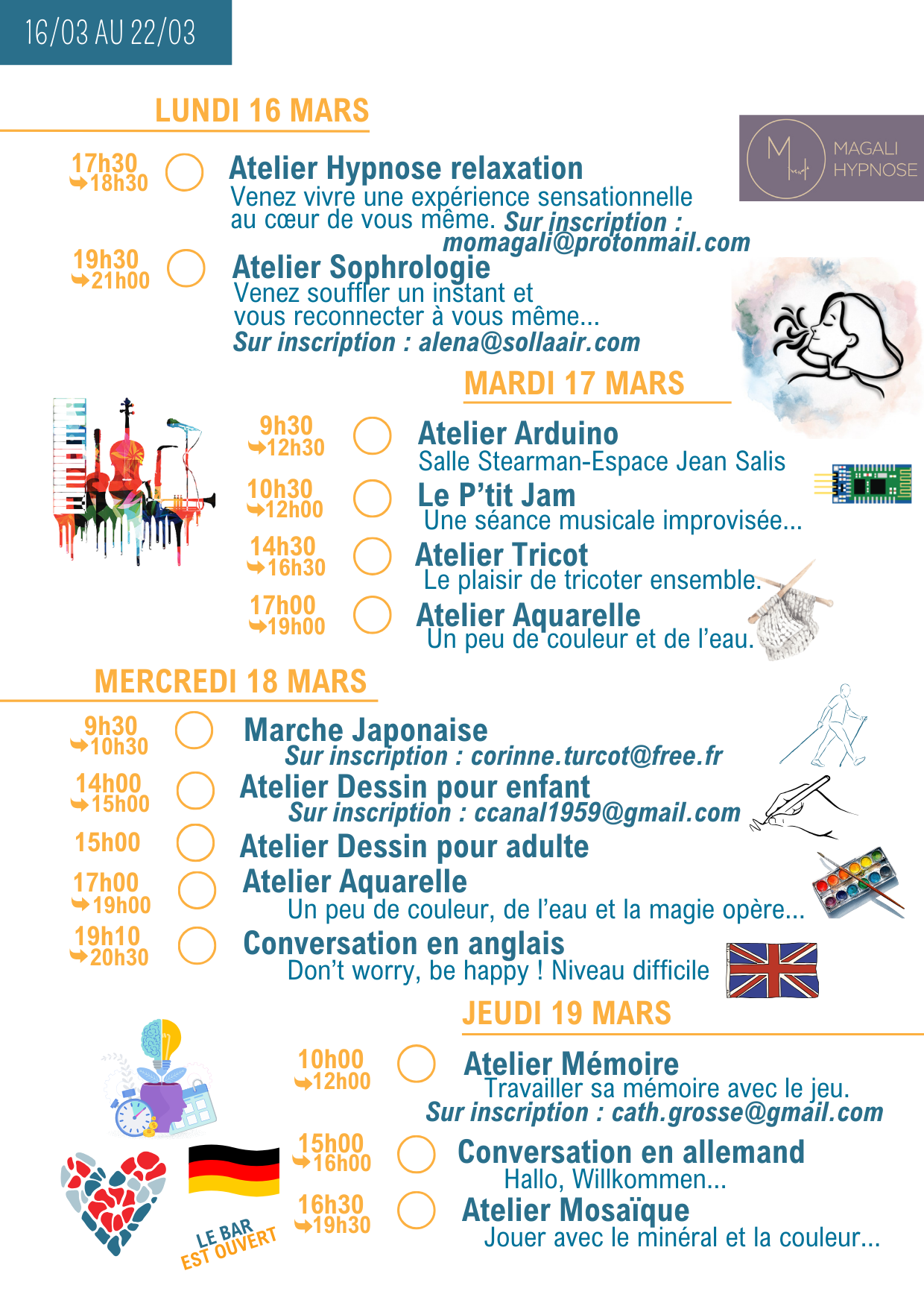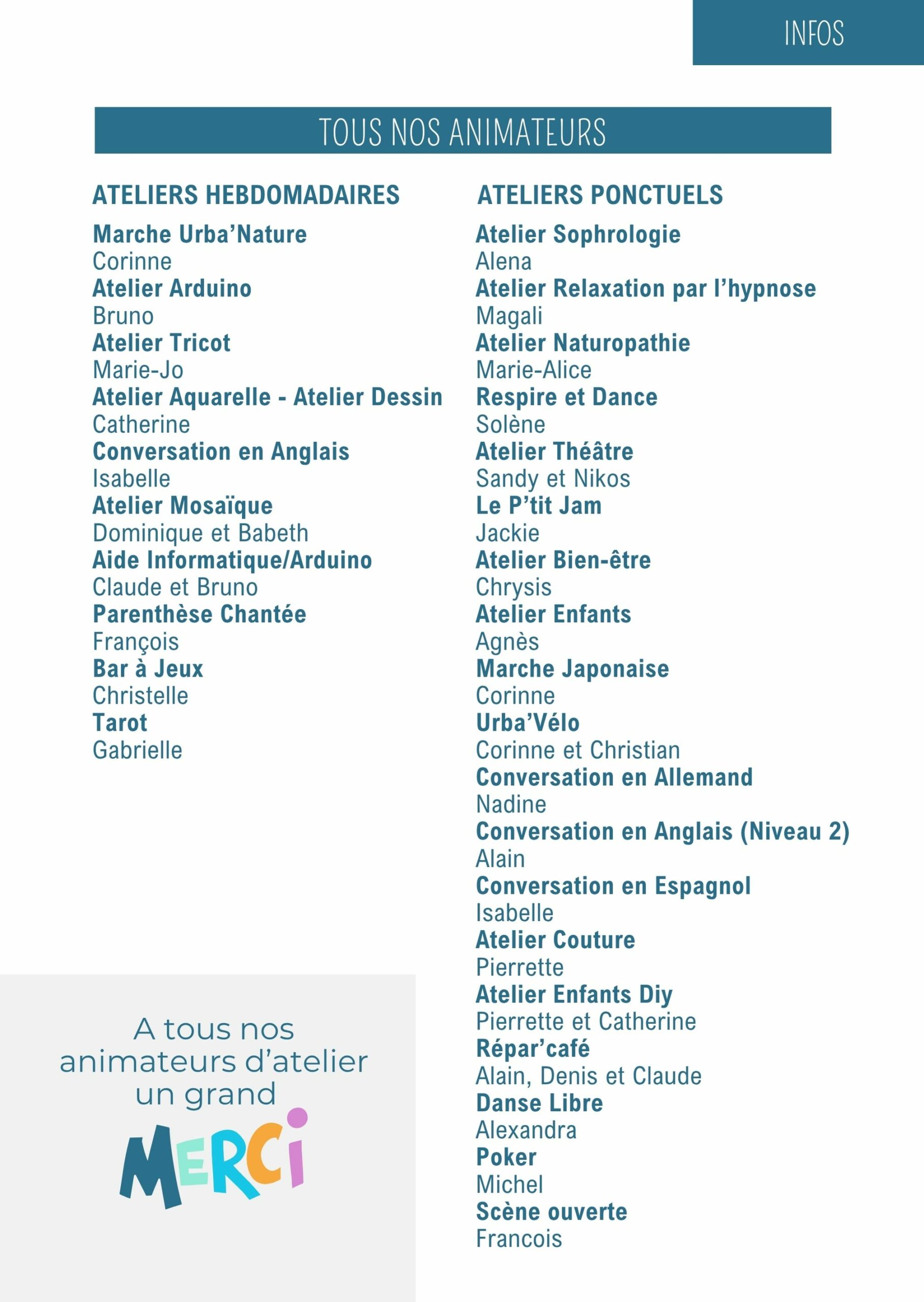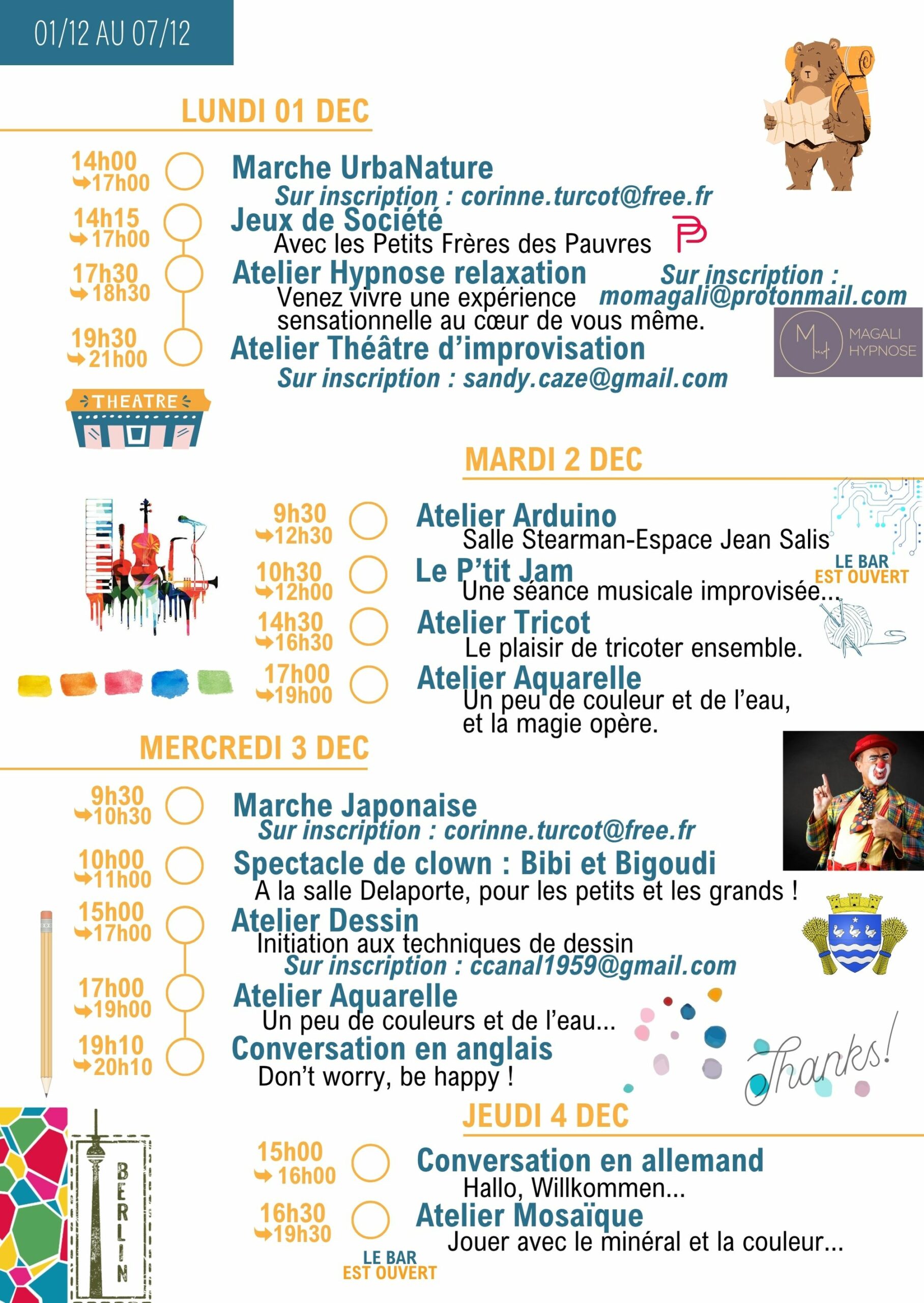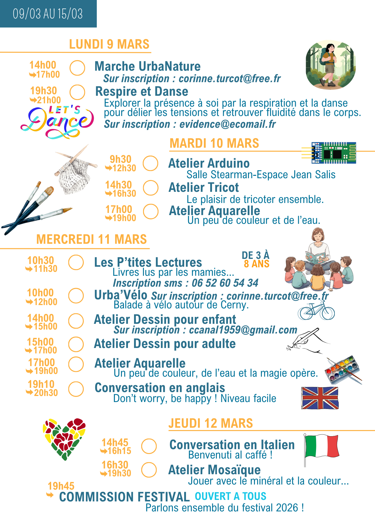 Merci de vérifier les informations dans la lettre hebdo, les jours et les horaires peuvent changer…