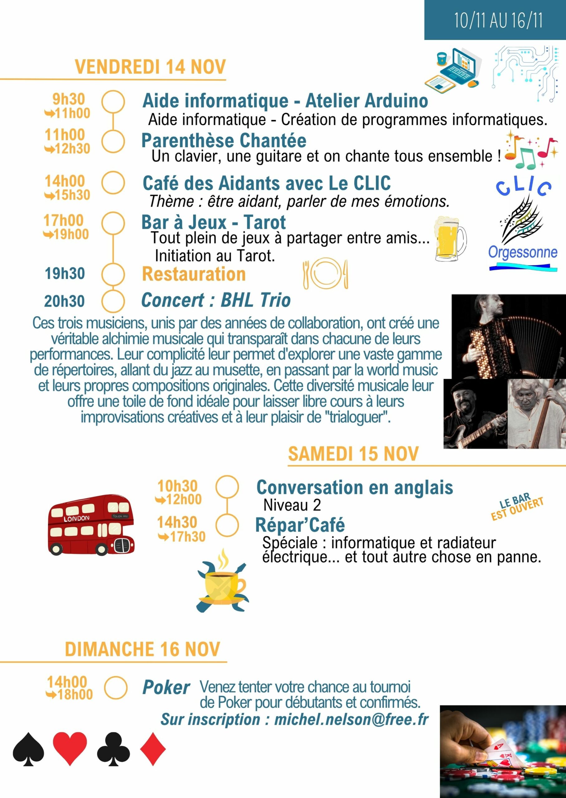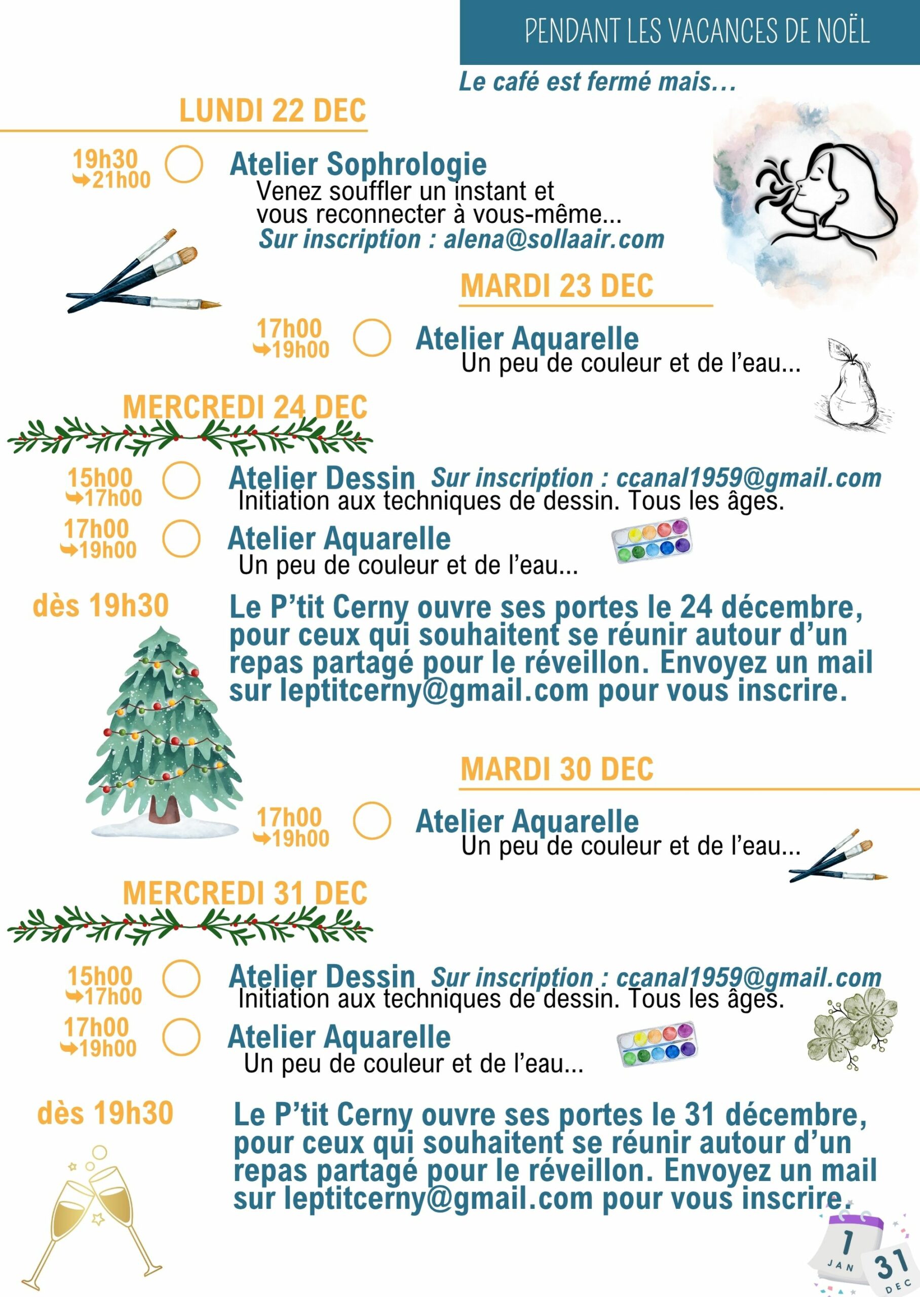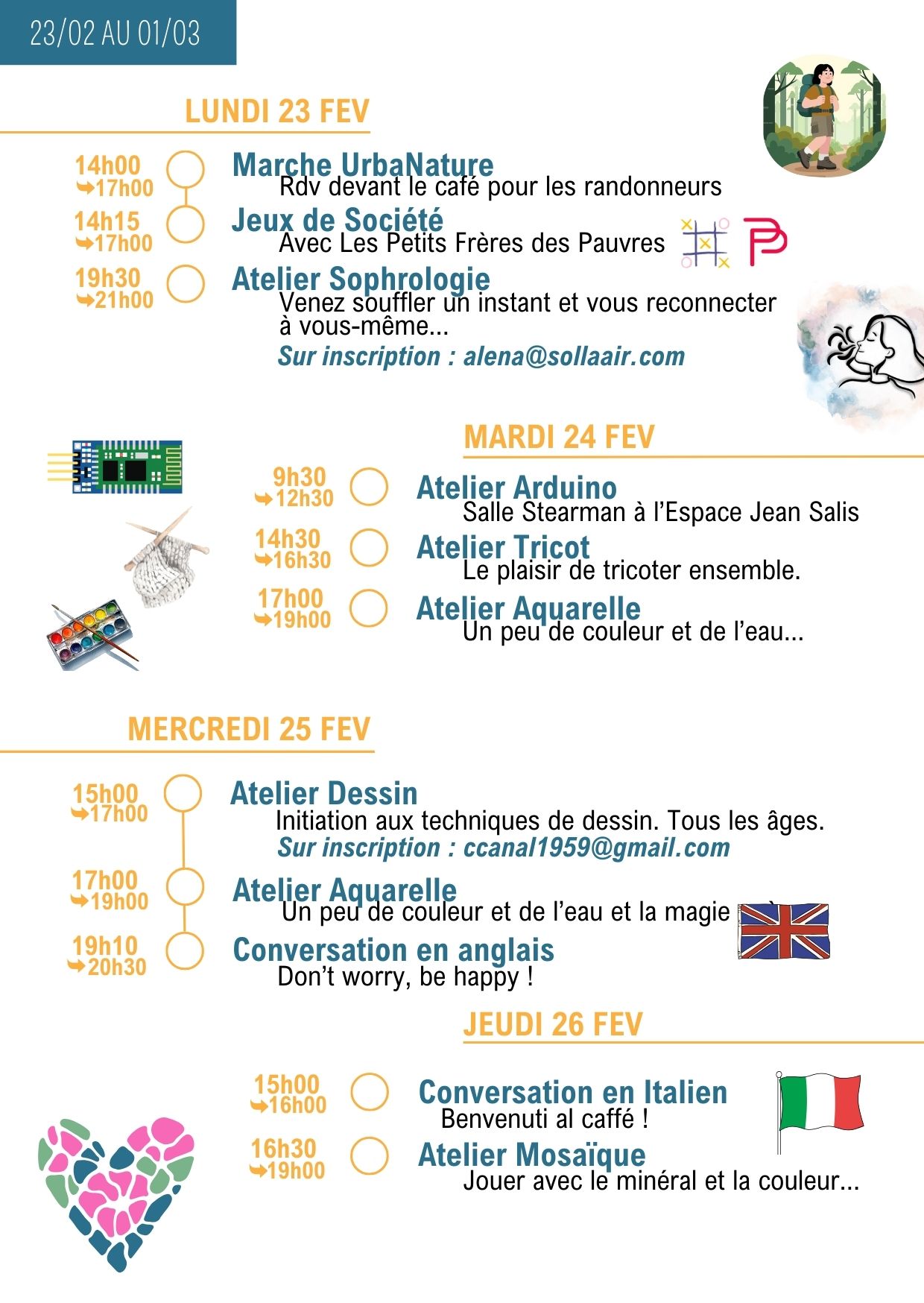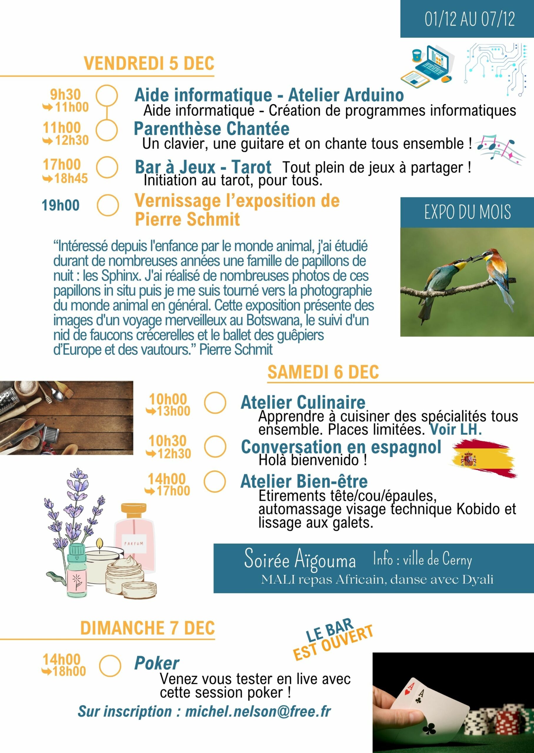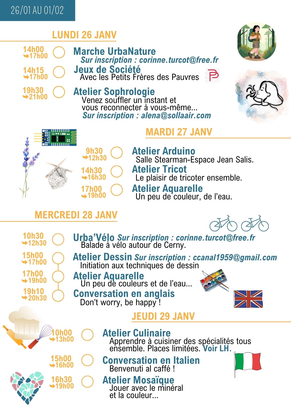 Merci de vérifier les informations dans la lettre hebdo, les jours et les horaires peuvent changer…