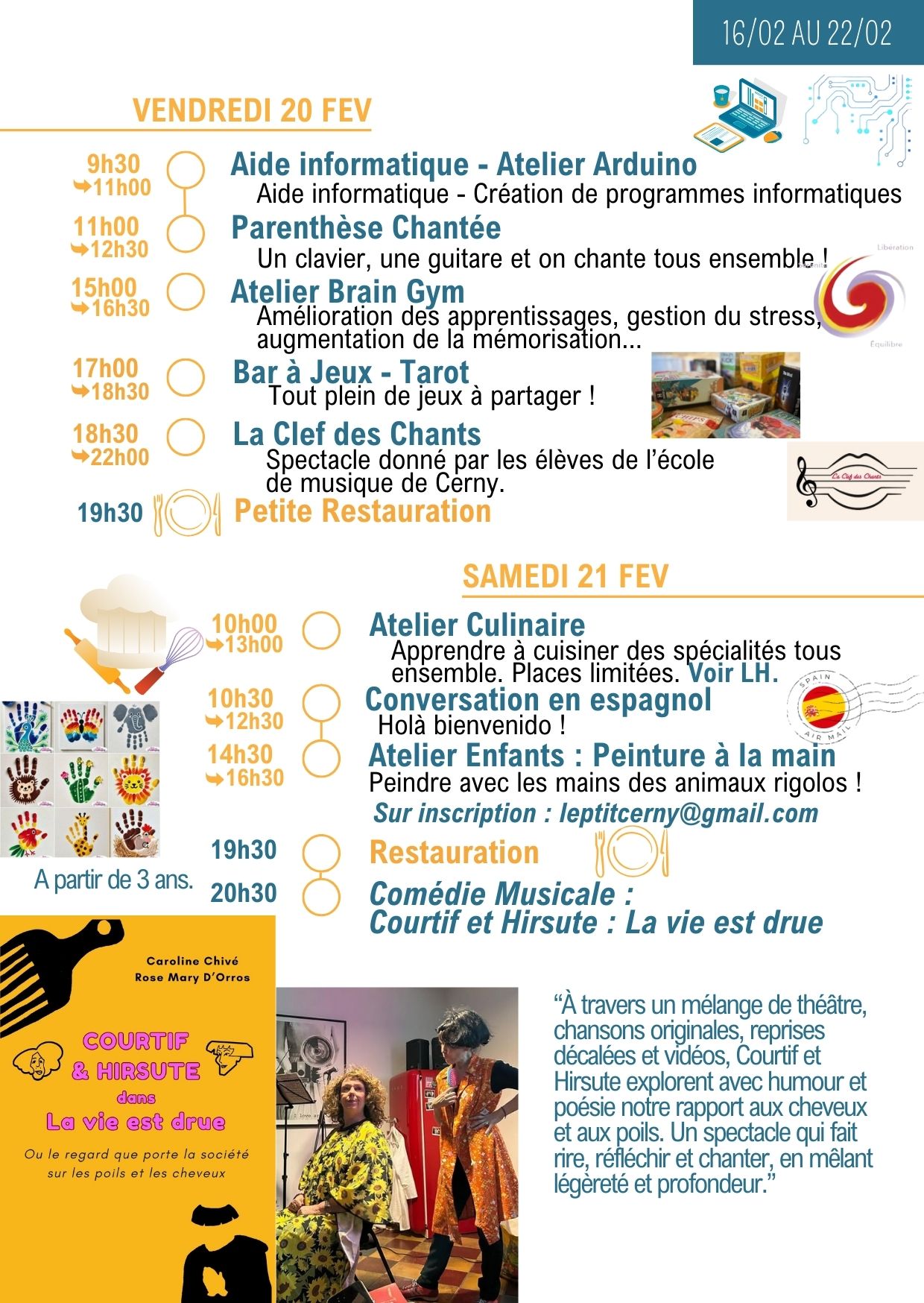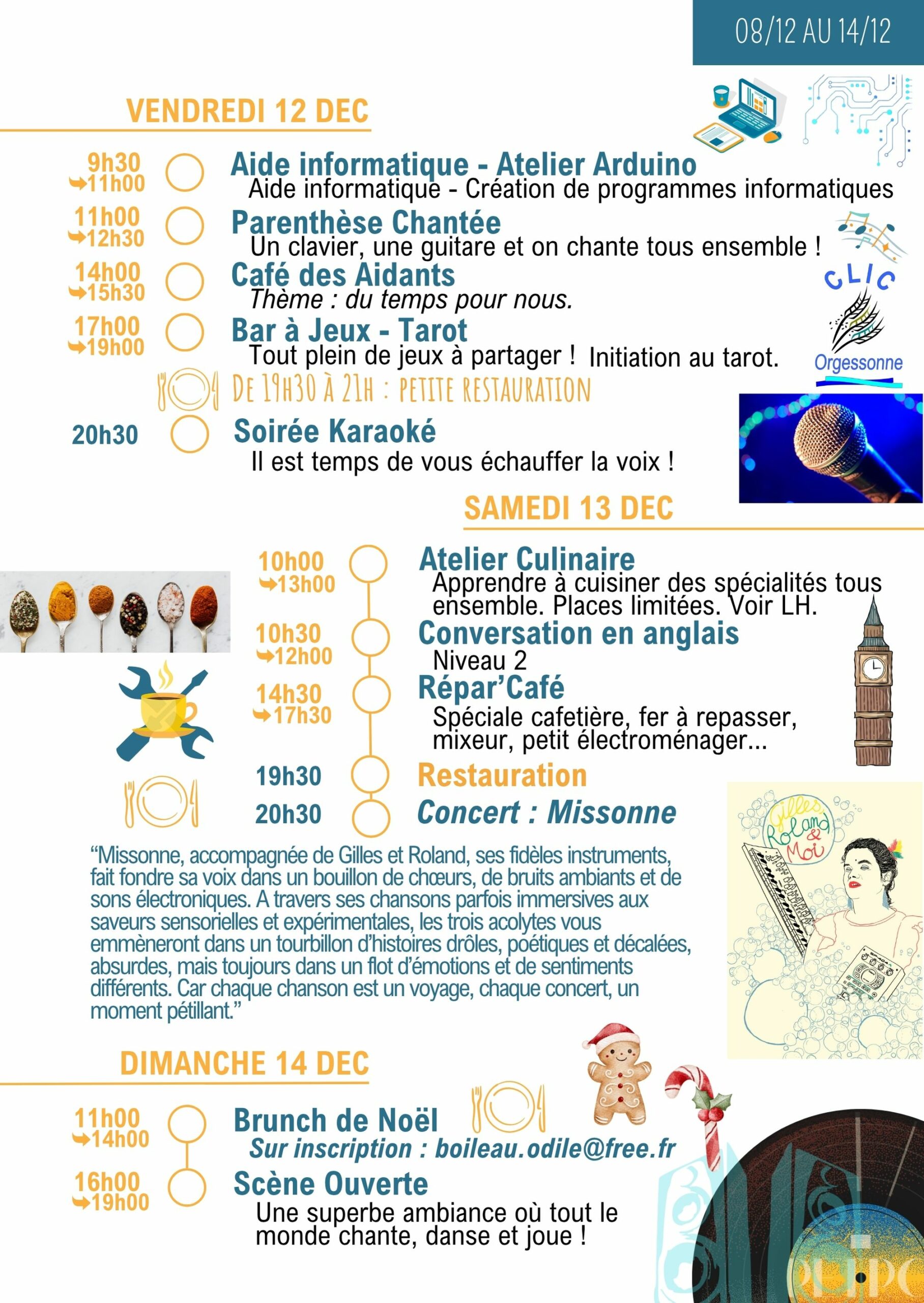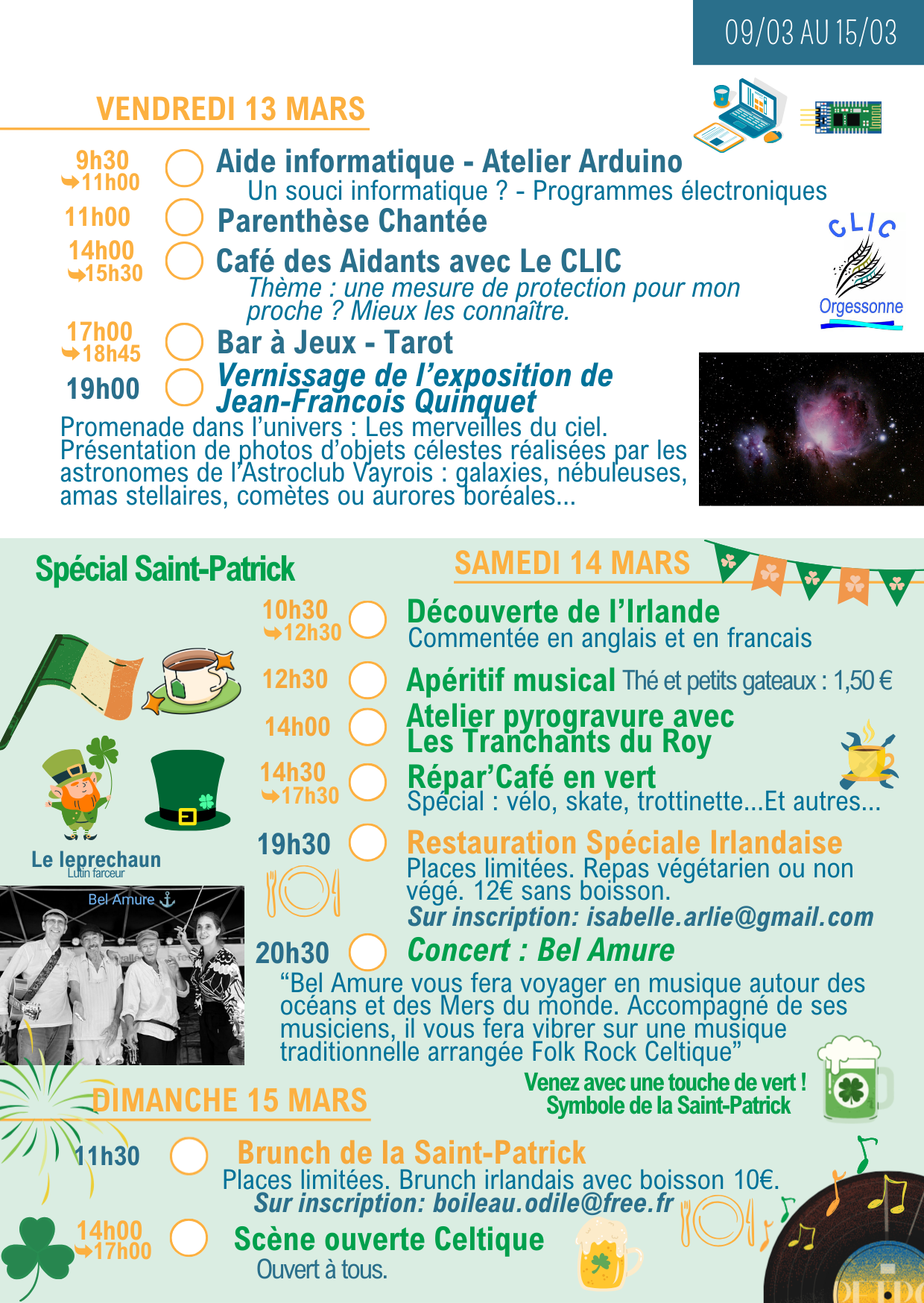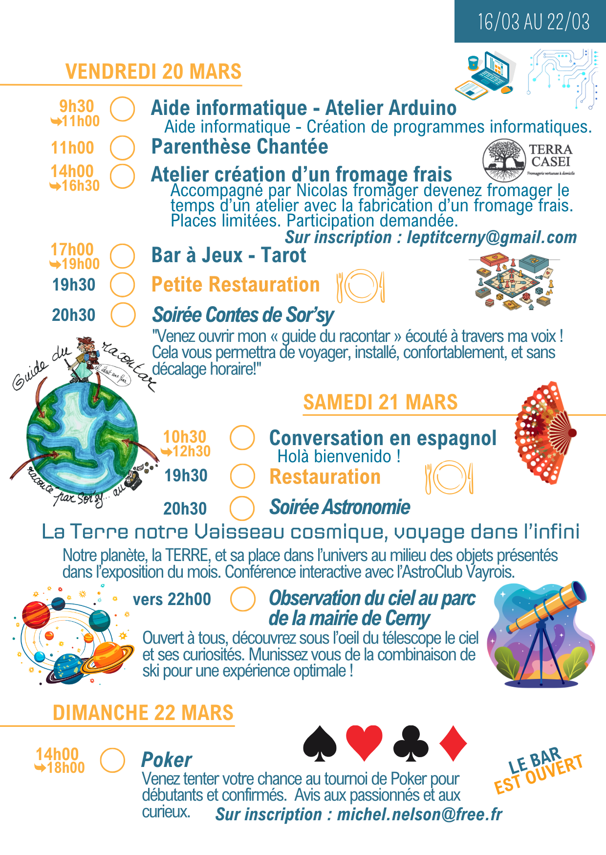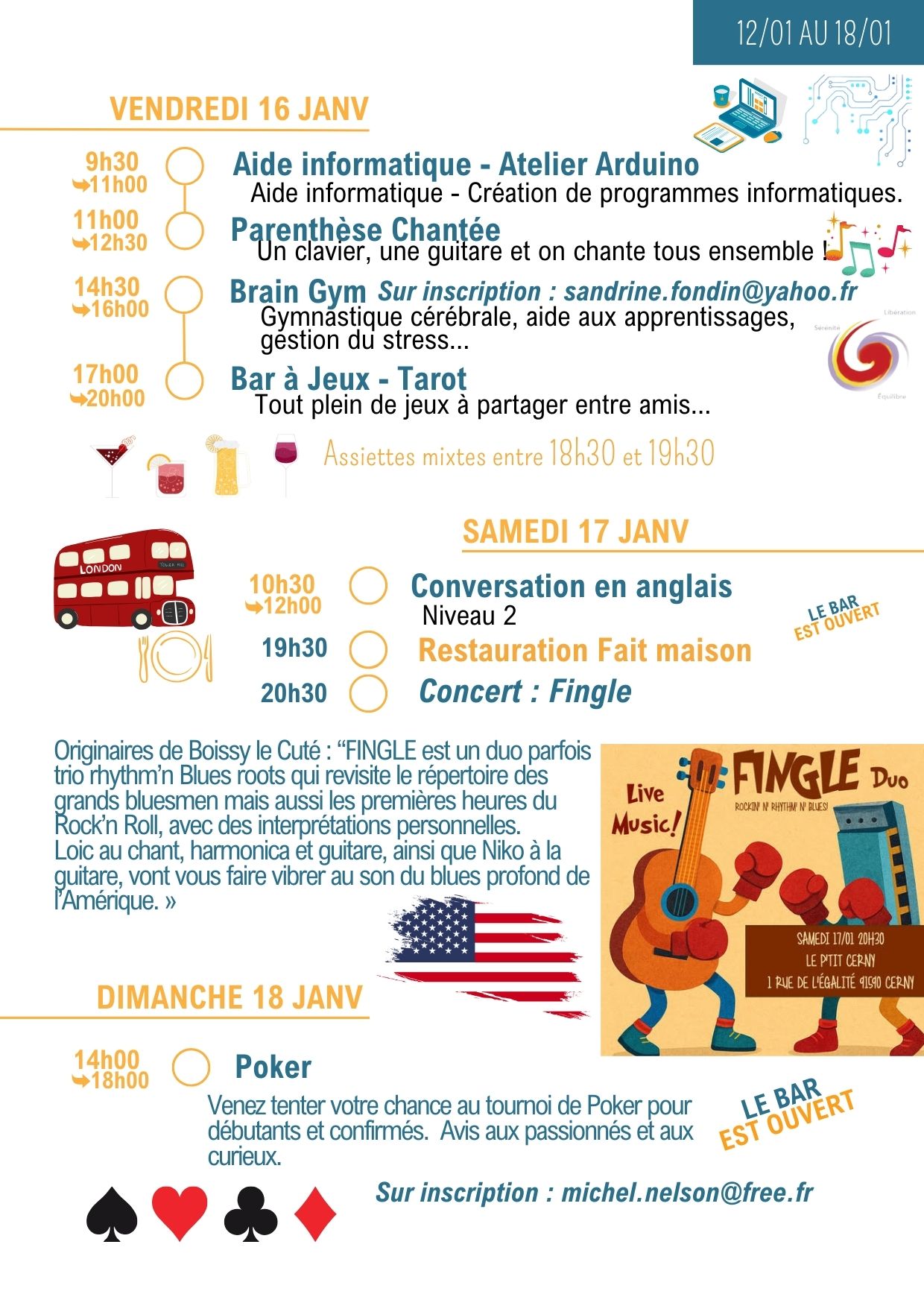 Merci de vérifier les informations dans la lettre hebdo, les jours et les horaires peuvent changer…