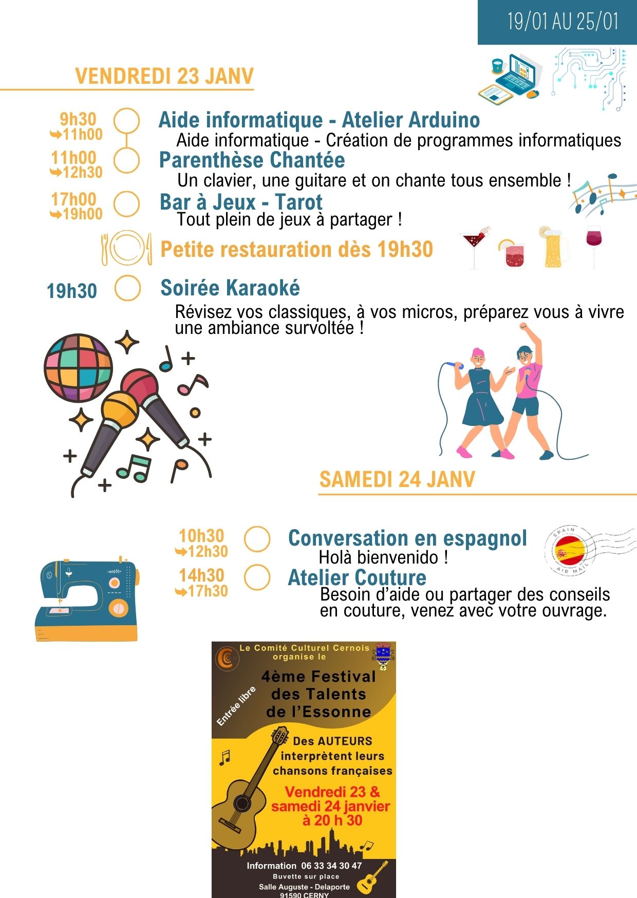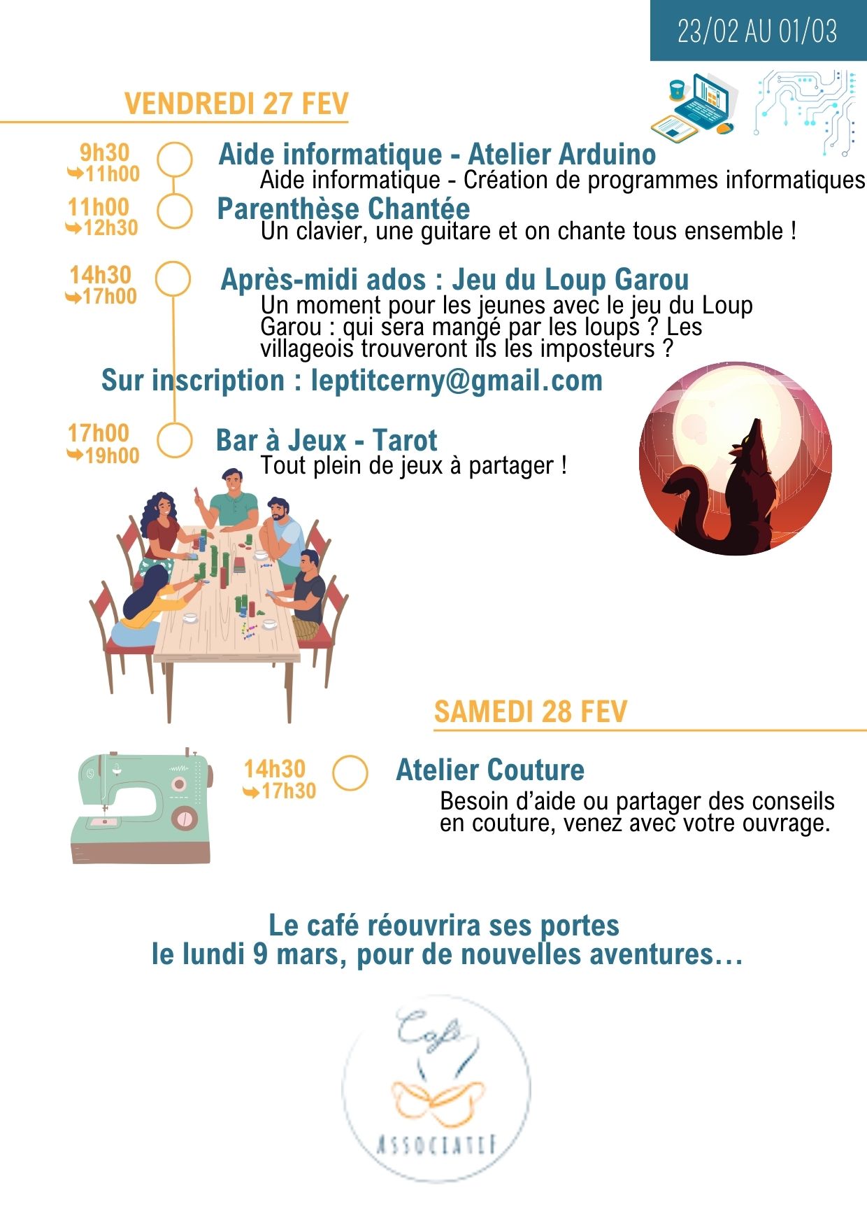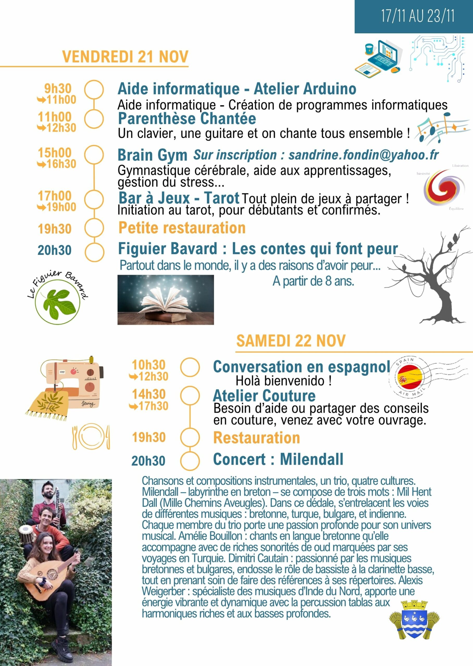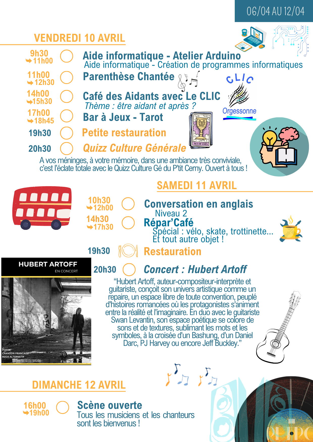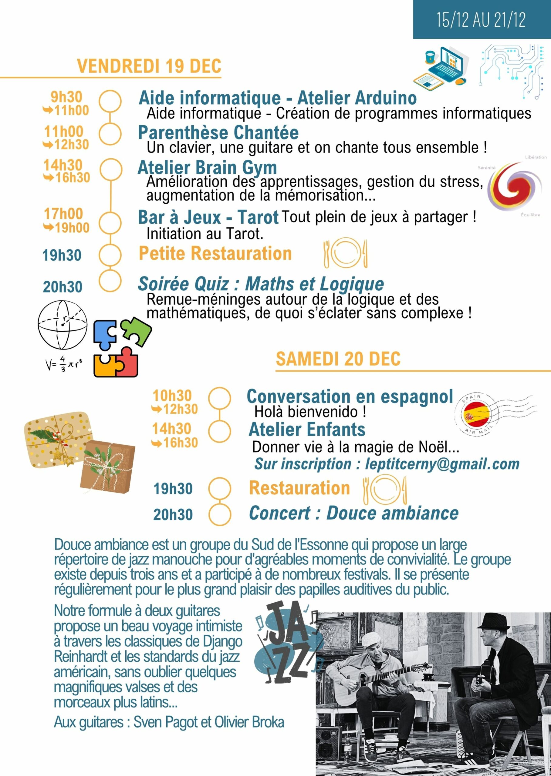 Merci de vérifier les informations dans la lettre hebdo, les jours et les horaires peuvent changer…